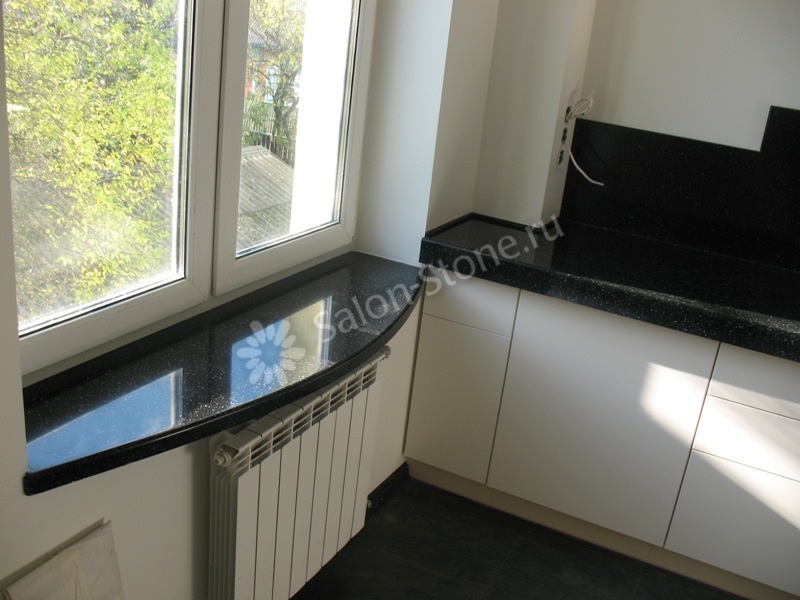 Черный акриловый подоконник с белыми вкраплениями