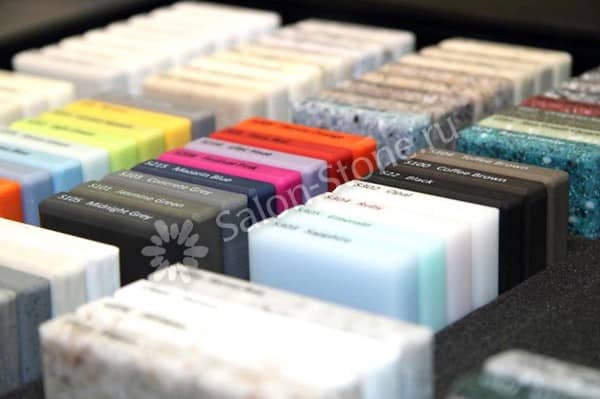 При выборе материала обратите внимание на его марку - от этого может зависеть даже его состав, не говоря уже о стоимости и цветовой гамме. Для создания некоторых марок используется база из акрила, для других - полиэфирная. При покупке обдумайте форму детали, учтите все особенности архитектуры вашего помещения, функционал будущей поверхности. Возможно, он будет являться частью кухонного стола барного типа, будет служить основой для встраиваемых элементов: техники, мойки, туалетных аксессуаров. Обратитесь к профессиональному замерщику, чтобы в дальнейшем при установке не возникло проблем при нестыковке размеров. Если форма вашей поверхности будет стандартной, прямоугольной, вам подойдет как материал из смолы, так и из полиэфира. Если же форма будет сложной - изогнутой, фигурной, то полиэфирный материал не подойдет, так как он плохо поддается термическому формованию. Особенно важно при создании более сложных форм не допустить наличия стыков и швов, которые в дальнейшем могут стать причиной разрушения и благоприятной средой для размножения бактерий.