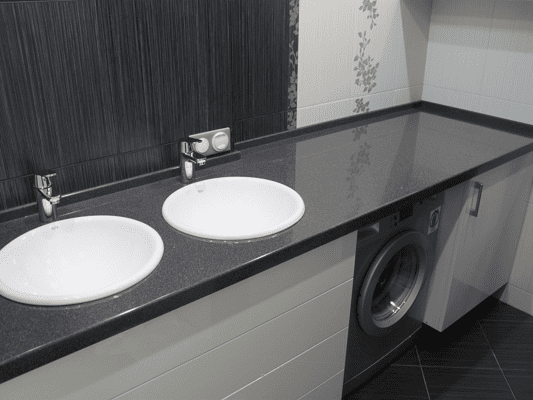 Темная столешница с раковиной из искусственного камня